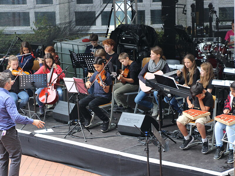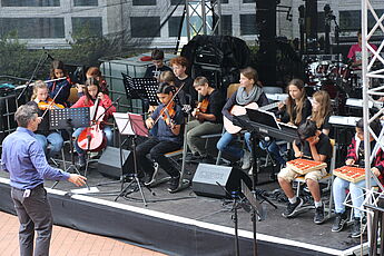 Auch in diesem Jahr findet wieder das beliebte Sommerkonzert in der letzten Schulwoche statt. Ab 18:00 Uhr spielen Schülerinnen aller Stufen in verschiedensten Formationen auf der großen Bühne, die auf dem Oberstufenschulhof aufgebaut wird. Wir können uns u.a. auf Vorträge der beiden Musikklassen (5d mit Frau Westerheider und 6d mit Herrn Heinke), des PopChorNs, einer Tanzgruppe, Einzelbeiträge, einem Ausschnitt aus dem 6k-united-Chor-Projekt der 6. Klassen, Beiträgen der Musikschule und unserer Big Band freuen. Das Sommerkonzert ist immer wieder ein schöner musikalischer Ausklang des vergangenen Schuljahres.