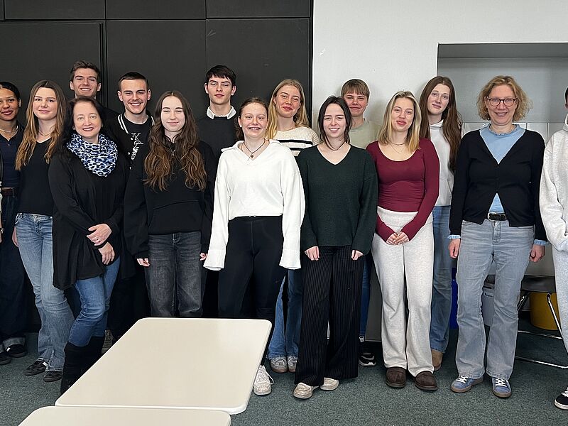Im Deutsch-LK der Jahrgangsstufe Q2 besuchte uns die Münsteraner Schriftstellerin Andrea Timm. Sie lud uns ein, einen fünfteiligen Gedichtzyklus gruppenweise zu interpretieren. Im Anschluss verriet sie uns einige ihrer Gedanken zu den eigenen Gedichten. Dieser Austausch war sehr offen, unterhaltsam und abwechslungsreich. Es war verblüffend, dass in einigen Fällen Deutungen übereinstimmten und wir in anderen Fällen Interpretationsoptionen angeboten bekamen, die wir nicht erwartet hätten. Auf jeden Fall hilft das gemeinsame Arbeiten mit einer „echten“ Dichterin dabei, die übertriebene Furcht vor der Gattung Gedichte abzulegen und sich auf das Abenteuer Interpretation zeitgenössischer Lyrik einzulassen.