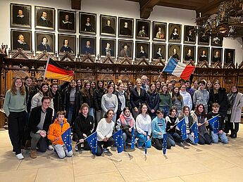Am Montag lernten sich die jungen Franzosen und Deutschen bei einer Sport- und Spiel-Olympiade in der Turnhalle des WHG kennen. Bürgermeisterin Angela Stähler empfing die Gäste aus Münsters Partnerstadt am Dienstag offiziell im Friedenssaal des Rathauses und informierte sie über zahlreiche interessante Details zur Geschichte des Friedenssaals und der Stadt Münster. Sie wies darauf hin, wie wichtig der persönliche Kontakt mit Menschen anderer Nationen und Kulturen im gemeinsamen Europa ist. Gerade angesichts der Erfahrungen von Pandemie und Ukraine-Krieg ermögliche das gegenseitige direkte Kennenlernen von Jugendlichen ein wirkliches Verstehen des Anderen und beuge dem Entstehen von Klischees und Vorurteilen vor.