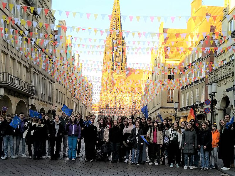 Im Rahmen des kommunalen Schüleraustausches der Städte Münster und Orléans sind zurzeit 26 Jugendliche zu Gast am Wilhelm-Hittorf-Gymnasium. Sie nehmen an einem Sprachkurs in Deutsch am Hittorf-Gymnasium teil und absolvieren ein umfangreiches Kulturprogramm. Die Schülerinnen und Schüler haben jeweils Austauschpartner/innen unterschiedlicher weiterführender Schulen der Stadt Münster und wohnen bei ihren Corres.