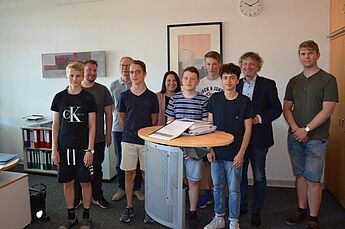 Es sind die Arbeiten von Joris Haenlein aus der Jahrgangsstufe 9, von Moritz Kandel und Jakob Roth aus der Jahrgangsstufe 10 und von Tarek Lichtenfeld aus der Jahrgangsstufe 11. Joris behandelte die Übersiedlung seiner Familie aus dem sozialistischen Ungarn nach Deutschland, der Beitrag von Jakob und Moritz beschäftigte sich mit den Studentenunruhen in Münster 1968 und Tarek untersuchte den Umgang der Evangelischen Kirche von Westfalen mit einem nationalsozialistisch belasteten Pfarrer nach 1945. Die Schüler erhalten ein Preisgeld und sind am 1. Juli zur Landespreisverleihung nach Bonn eingeladen.