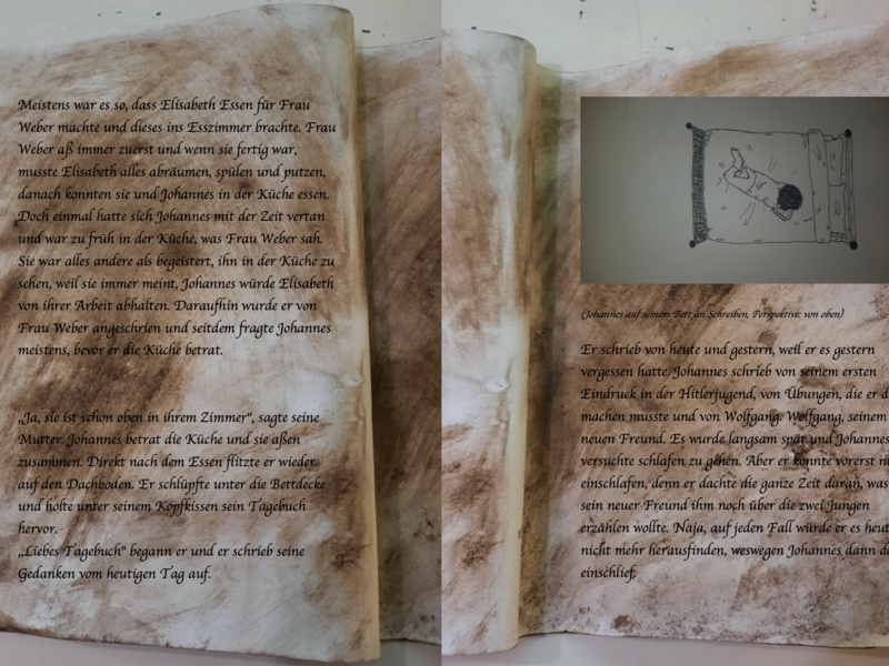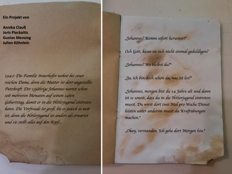Das Spannende an dem Forderangebot ist, dass es sich nicht nur an diejenigen richtet, die Spaß am Entdecken und Forschen, sondern auch an diejenigen, die Lust auf das künstlerische Darstellen ihrer Ergebnisse haben. In der letzten Woche konnten sechs Wettbewerbsbeiträge bei der Körber-Stiftung für den Geschichtswettbewerb des Bundespräsidenten eingereicht werden, die verschiedener nicht sein könnten: Von einer „Novelle“ im Tagebuchdesign, über ein Spielbrett zum Thema „Ski fahren am WHG“, über einen Fußball-Podcast, bis hin zu einem Bilder-Buch zum Thema „Reitsport in Münster“ und einer schriftlichen Forschungsarbeit zum Thema „Ballett – reine Mädchensache?“ war bezogen auf die Darstellungsform fast alles dabei! Gut geklappt hat auch die Zusammenarbeit mit dem Institut für Geschichtsdidaktik! So haben zwei Studierende als Co-Tutor*innen die Kleingruppen bei ihrer Recherche unterstützt (auch wenn Corona hier die Zusammenarbeit etwas komplizierter gemacht hat!) Jetzt heißt es: DAUMEN DRÜCKEN! Für alle, die Interesse haben, finden sich anbei einige „Einblicke“ in die unterschiedlichen kreativen Wettbewerbsbeiträge! Und die jetzigen 6. Klässlerinnen und 6. Klässler können sich schon einmal Gedanken machen, ob dieses freiwillige Forderangebot etwas für sie wäre.