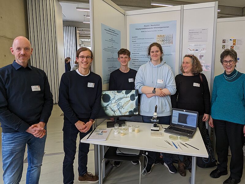 Hierfür präsentierten sie an der Fachhochschule in Steinfurt unter dem Titel „Plastic: Revolution – polystyrolabbauende Mikroorgansimen“ ihre neusten Forschungsergebnisse. Dabei standen nicht mehr wie im letzten Jahr, als die drei auf Bundesebene einen zweiten Platz erreichten, die Larven des Großen Schwarzkäfers im Vordergrund. Vielmehr fokussieren Malte, Beeke und Leo sich nun auf das Mikrobiom, also auf die in den Maden lebenden Darmbakterien, denn diese sind offensichtlich verantwortlich für den Styropor-Abbau.