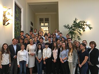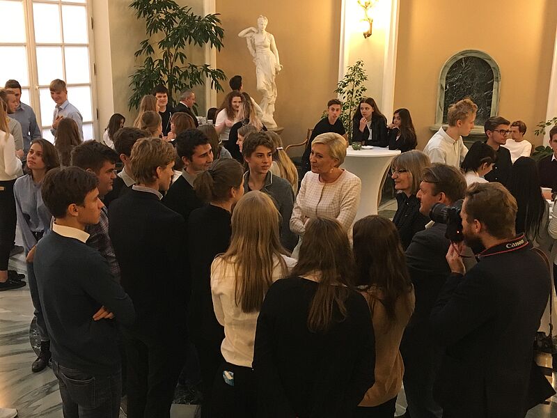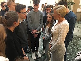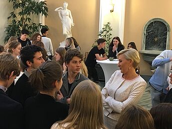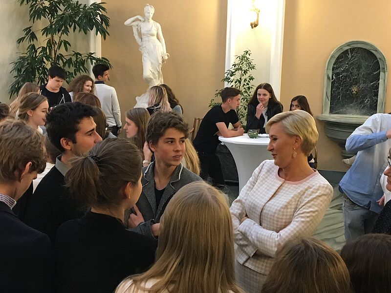 Höhepunkt des siebentägigen Aufenthalts war ein Empfang bei Frau Kornhauser-Duda, der Gattin des Präsidenten der Republik Polen. Die erste Dame im Staat, selbst langjährige Deutschlehrerin, lud die deutsch-polnische Schülergruppe in den Präsidentenpalast ein und tauschte sich mit ihren Gästen über Schule und Bildung sowie die Bedeutung deutsch-polnischer Begegnungen aus. Sie betonte dabei, wie wichtig ihr Jugendbegegnungen für die Festigung der Freundschaft beider Völker sind.