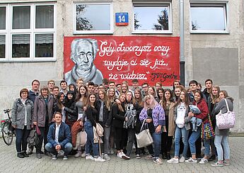 Mit dem polnischen Goethe-Lizeum pflegen die Münsteraner seit einigen Jahren ein intensives freundschaftliches Verhältnis, welches sich in gemeinsamen Projekten und gegenseitigen Besuchen in Warschau, Münster und Buchenwald zeigt. Nachdem die polnische Gruppe im Juni unter anderem zur Besichtigung der diesjährigen Skultpurenausstellung in Münster zu Gast war, erfolgte nun der Gegenbesuch in den polnischen Familien. Thematisch arbeitete man in der polnischen Hauptstadt gemeinsam an Fragen der Entwicklung und Tendenzen der europäischen Parteienlandschaft und besuchte hierzu neben historischen Orten auch das polnische Parlament.