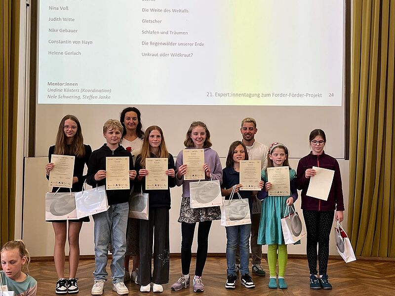 Die diesjährigen FFP-Teilnehmer:innen präsentierten stolz ihre Ergebnisse und Vorträge vor Eltern, Freunden und Großeltern. Dabei ist immer mehr zu erkennen, dass es sowohl Themen sind, wofür die Kinder schon immer „brennen“ als auch Fragestellungen unseres aktuellen Lebens (z.B. „Gletscher“, „Schlafen und Träumen“, „Unkraut oder Wildkraut“).