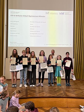Nach der kurzen Begrüßung von Herrn Ehling, Leiter des Amts für Schule und Weiterbildung der Stadt Münster, und Prof. Dr. Fischer als wissenschaftlicher Projektleiter war durch die Präsentationen der Schülerinnen und Schüler Hochspannendes zu erfahren.