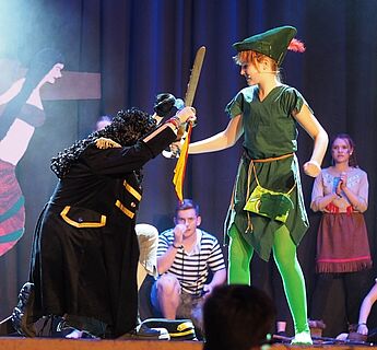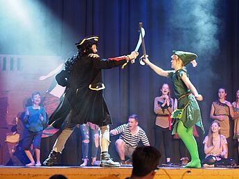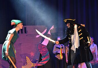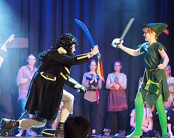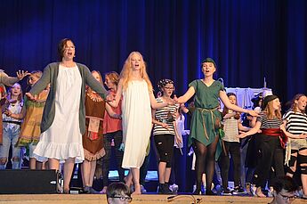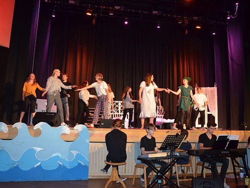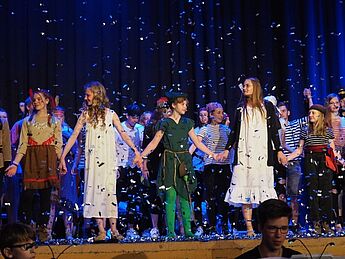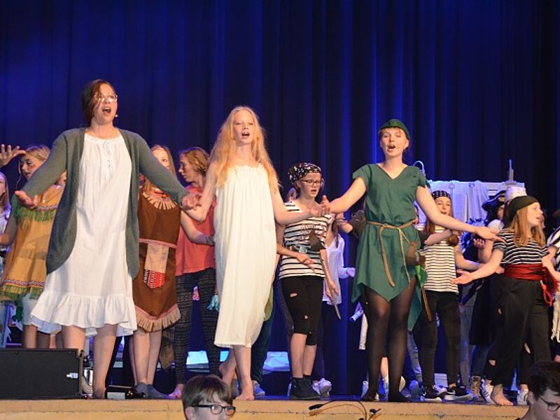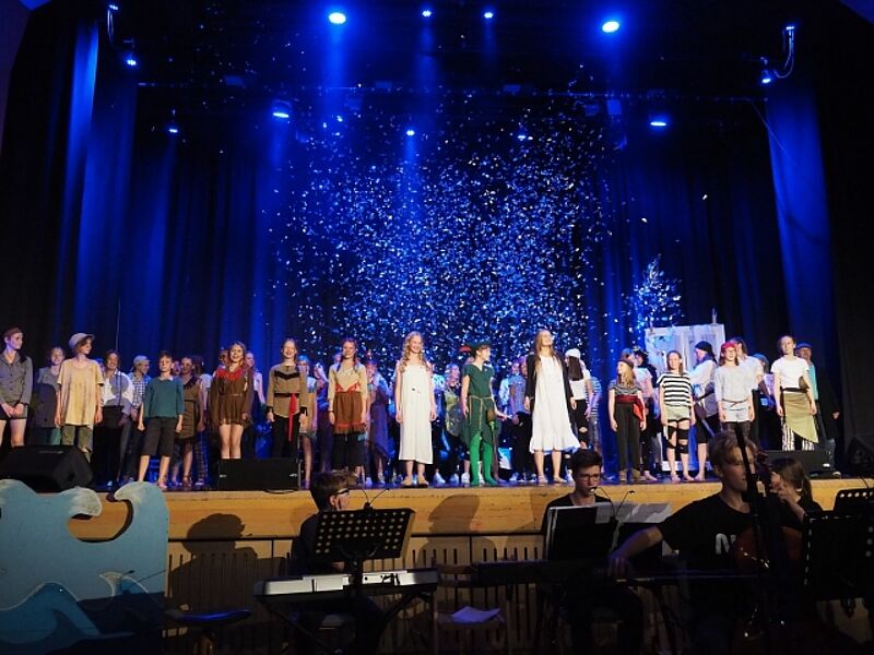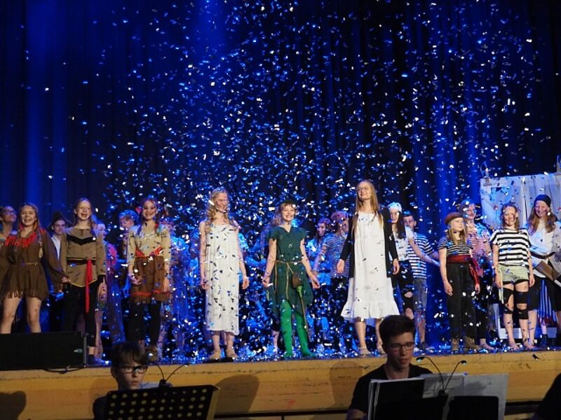 Über 70 Schülerinnen und Schüler sowie Lehrerinnen und Lehrer nahmen das begeisterte Publikum mit auf eine musikalische und tänzerische Reise in die zauberhafte Traumwelt Nimmerlands. Drei grandiose Aufführungen mit vielen Gänsehautmomenten und stehenden Ovationen waren die Belohnung für das herausragende Engagement der Schauspieler, Künstler und Musiker. Schulleiter Christian Schrand lobte insbesondere die Tatkraft und sichtliche Freude, mit denen Schüler, Lehrer und Eltern bei diesem beeindruckenden Projekt zusammengearbeitet haben.