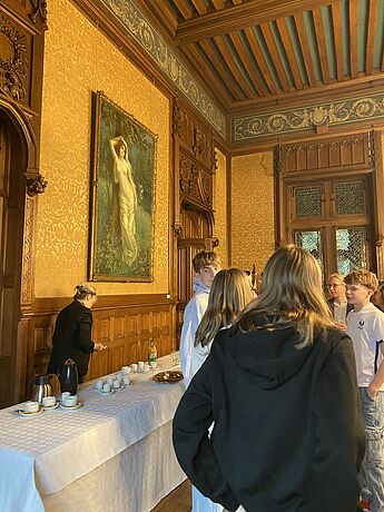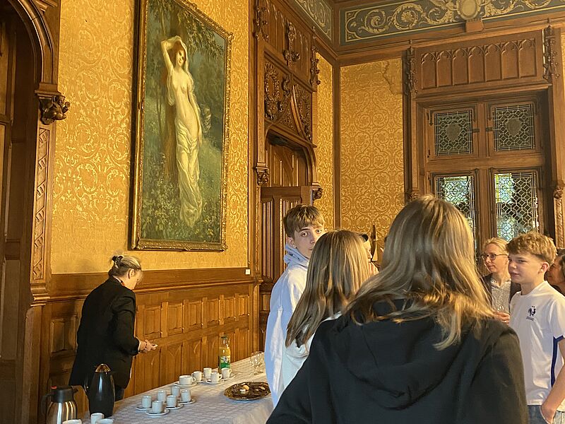 Am Donnerstag, 09.03. trafen die Gäste aus Libourne in Münster ein, die Partner aus Toulouse am Montag darauf, ein paar Koffer noch ein paar Tage später. Mit einem kurzen Empfang und Rundgang durch das Schulgebäude begann das Programm für die Gäste, bei sportlichen Spielen und einem gemeinsamen Vormittag beim Bouldern lernten sich die Austauschpartner dann näher kennen. Durch die Teilnahme am Unterricht erhielten die Gäste einen Einblick in das deutsche Schulsystem. Um einen Eindruck von der Stadt Münster und ihrer historischen Bedeutung zu bekommen, wurden die französischen Schüler*innen mit einer Stadt-Rallye durch die Münsteraner Innenstadt geführt und besuchten abschließend den Friedenssaal. Eine gemeinsame Fahrt nach Köln schließlich, mit dem Besuch des Deutschen Sport- und Olympiamuseums, der Besichtigung des Kölner Doms und der Erkundung der Stadt rundetet das Programm in Deutschland ab.