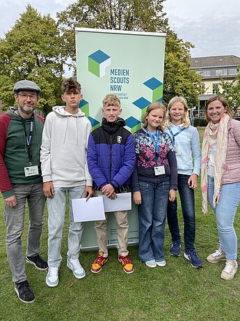 Bereits vor den Herbstferien endete die Ausbildung unserer Medienscouts durch die Landesanstalt für Medien NRW. Stolz hielten Lilli Rohdenburg und Martha Hellmann (beide 8d) sowie Adam Dreyßig und Caspar Kronlage (beide 8c) ihre Zertifikate in den Händen. Gemeinsam mit den Beratungslehrern für Medien, Frau Ingermann und Herrn Unkel, werden die Medienscouts in Zukunft unsere Schülerinnen und Schüler bei Fragen und Problemen rund um das Internet, Social Media sowie die Handy-und Tabletnutzung beraten. Konkrete Aktionen und Angebote folgen in Kürze!!
