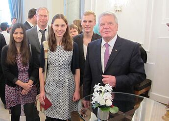 Mit zwanzig Beiträgen von 29 Teilnehmerinnen und Teilnehmern hatte sich das Wilhelm-Hittorf-Gymnasium am diesjährigen Geschichtswettbewerb des Bundespräsidenten zum Thema „Außenseiter in der Geschichte“ beteiligt. Vier Beiträge wurden mit einem Landespreis ausgezeichnet, zwei Arbeiten erhielten einen Förderpreis. Mit diesem Ergebnis erreichte unsere Schule im bundesweiten Ranking den sechsten Platz. Das Hittorf-Gymnasium gehörte damit erneut zu den zehn besten Schulen, die eine Delegation bestehend aus einem Tutor und drei Schülern zur Bundespreisverleihung nach Berlin mit dem Bundespräsidenten Joachim Gauck entsenden durften.