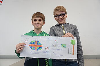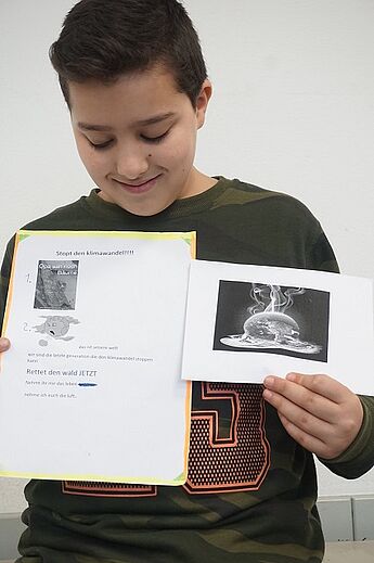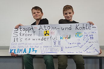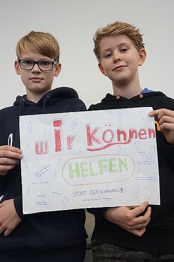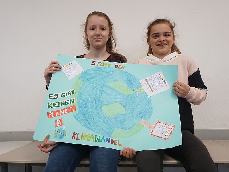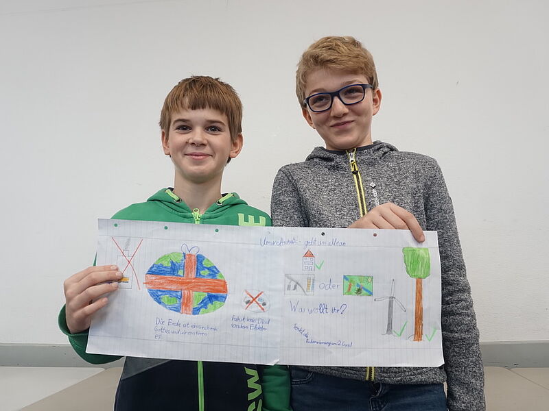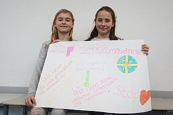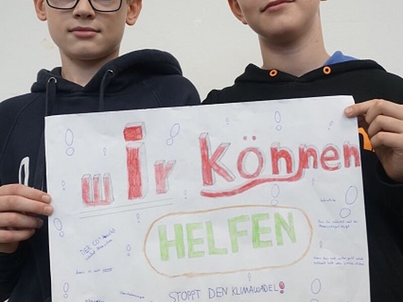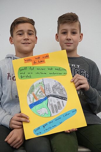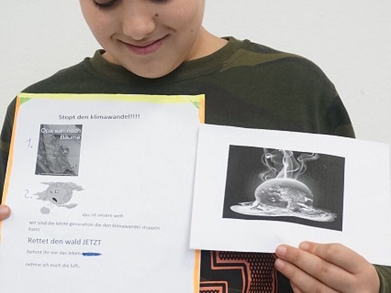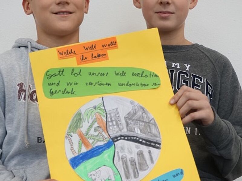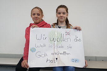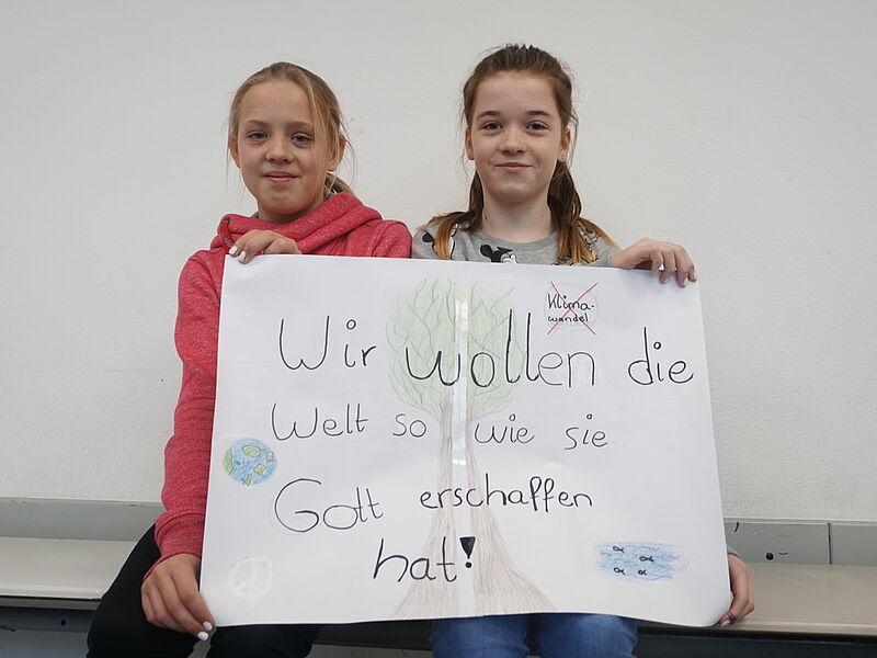 Dieser Grundgedanke diente als Einstieg in eine Unterrichtsreihe der JgSt. 6 im Fach Kath. Religion in diesem Schuljahr (2017-18) und mündete in der Erstellung von Demonstrationsplakaten aus Anlass der Weltklimakonferenz in Bonn (6.-17.11.17), die in dieser Woche im Seiteneingangsbereich der Schule ausgestellt wurden.