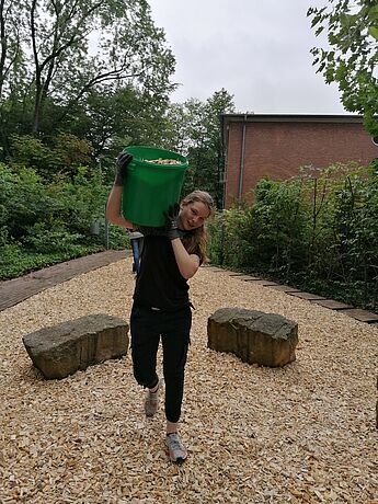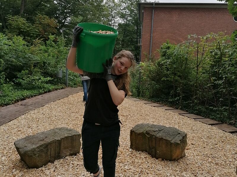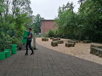 Die Schülerinnen und Schüler vom WP2-Kurs von Frau Riethmüller waren so tatenhungrig, dass das grüne Klassenzimmer jetzt in einem neuen Glanz erstrahlt. Was ist passiert?