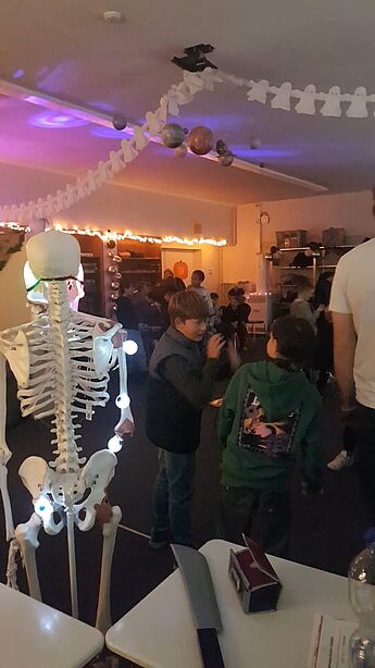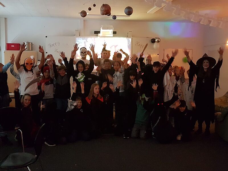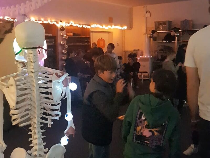 Am 31.10. fand wieder einmal die alljährliche Halloween-Party in der Übermittagsbetreuung statt. Bei einer schaurig-schönen Atmosphäre konnten die Kinder, die zum Teil auch verkleidet kamen, ausgiebig feiern. Neben guter Musik gab es unter anderem Bobbycar-Rennen, „Reise nach Jerusalem“ oder Limbotanzen. Softdrinks, süße und herzhafte Snacks durften natürlich auch nicht fehlen! Wie jedes Jahr hatten die Kinder und Betreuer*innen viel Spaß. Wir freuen uns schon auf die nächste Party!