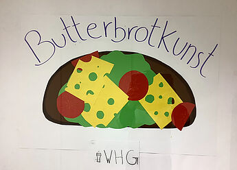 „Das Butterbrot ist Weltkulturerbe“, schreibt ein Schüler der Klasse in sein für das Projekt erstellte Skizzenbuch. In der Mensa des WHGs hängt seit vergangener Woche eine neue Ausstellung mit dem Titel „Butterbrotkunst“. Gemeinsam mit der Referendarin Frau Voß wurden zunächst Brote in Form von Collagen geplant und „belegt“, anschließend dann auch – wie richtige Foodblogger:innen – in echt geschmiert, dekoriert und gegessen.