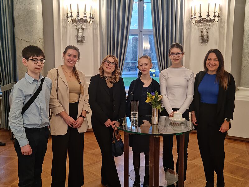 Nach Berlin begleitet wurden die drei Achtklässler:innen von Sophie Reinhart, zwei studentischen Tutorinnen und unserem Schulleiter Torsten Korfsmeier, um bei dem Festakt und der besonderen Auszeichnung live dabei sein zu können.