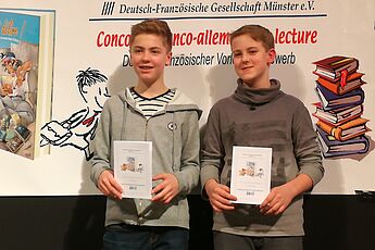 Einen hervorragenden 4. Platz belegte dabei in diesem Jahr Linus Grundke und einen Sonderpreis „Prix d’Encouragement“ erhielt Nikita Rjabinin. Beide sind Schüler der Klasse 7a und präsentierten sich mit klarer Aussprache und sinnbetonendem Lesen dem Publikum.