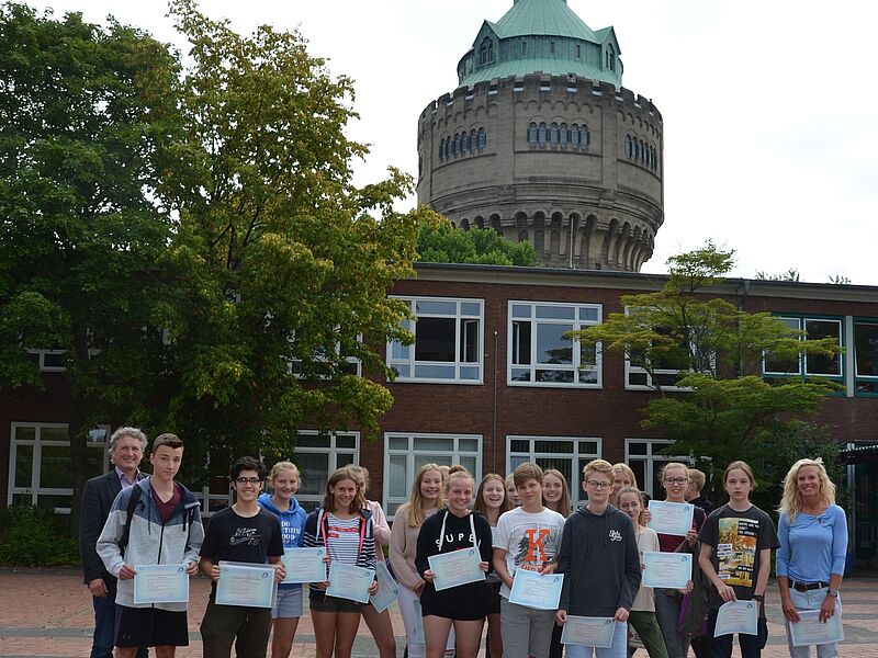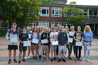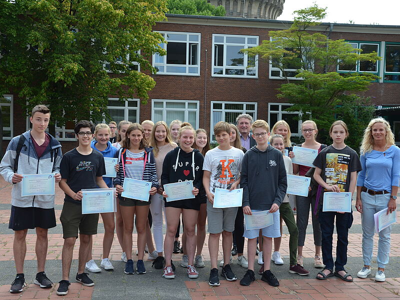Auch in diesem Jahr haben SchülerInnen der Jahrgänge 8-EF erfolgreich an den beiden DELF-AGs der Niveaustufen A2 und B1 des gemeinsamen europäischen Referenzrahmens für Sprachen teilgenommen und Zertifikate des französischen Bildungsministeriums erworben, mit denen sie später für Praktika und Jobs im In- und Ausland ihre Sprachkenntnisse in den vier Bereichen Hörverstehen, Leseverstehen, Textproduktion und mündliche Kommunikation nachweisen können.