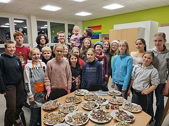 Auch in diesem Jahr wurde wieder von vielen Kindern der Junior-SV und großen SV fleißig gebacken, um Danke zu sagen. Am Montag, den 11.12. trafen sich mehrere Backbegeisterte, die über 10 Bleche Plätzchen ausstachen, verzierten und in Geschenktüten verpackten. Dabei durfte natürlich auch die Weihnachtsmusik nicht fehlen.