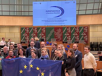 Die Jahrestagung der Europaschulen trug in diesem Jahr das Motto „Europäisches Jahr der Kompetenzen“. Im Mittelpunkt der diesjährigen Jahrestagung standen die in 2023 zertifizierten Europaschulen sowie die Europaschulen, die bereits seit 15 Jahren zertifiziert sind. Herr Korfsmeier, Herr Mersmann, Frau Schermaul und Frau Wethkamp haben an dieser Tagung teilgenommen und das Hittorf-Gymnasium vertreten. Wir gehören mit dem Kantgymnasium zu den ältesten Europaschulen in Münster.