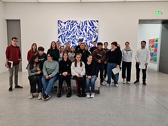 Im LWL-Museum durften die jungen Künstler*innen daher auf Inspirationssuche gehen und in den Ausstellungsstücken Anknüpfungspunkte für die eigene Umsetzung finden. Dabei fiel schnell auf, dass Kunst viel mehr sein kann, als man vielleicht denkt. Neben abstrakten Formen überraschten auch ungewöhnliche Materialien. Ein Werk der Künstlerin Johanna Reich, welches Video, Malerei und Performancekunst gattungsübergreifend vereinte, bildete einen spannenden Gesprächsanlass fürs eigene Projekt. Auch viele weitere Werke und Darstellungsformen luden zur persönlichen Interpretation ein.