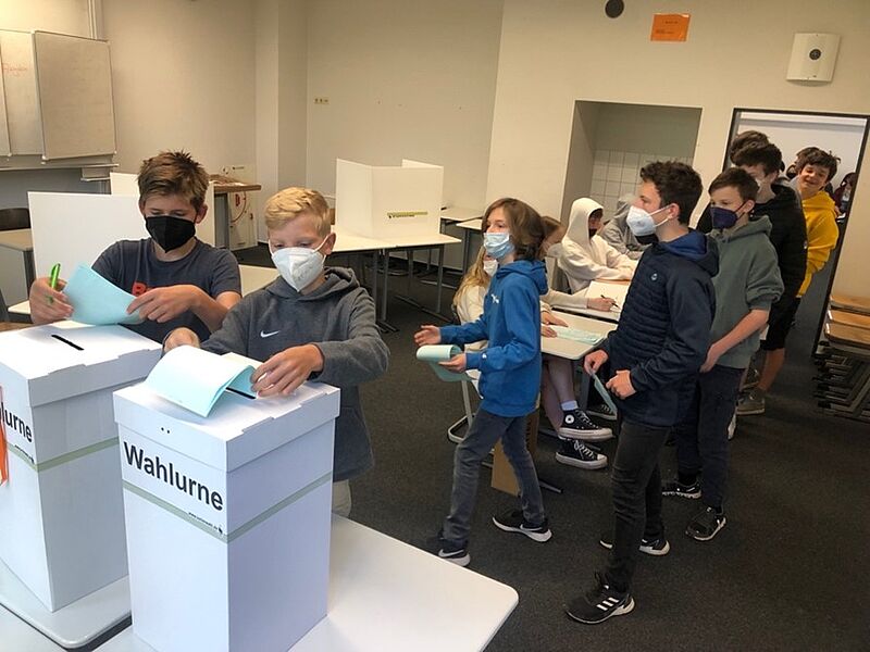 An der Juniorwahl konnten erneut alle Schüler*innen der Jahrgangstufen 8 bis Q1 (insgesamt 473 SuS) teilnehmen. Alle Wahlberechtigten erhielten eine Wahlbenachrichtigung, das Wahlverzeichnis wurde erstellt und die Schüler*innen informierten sich unter anderem in ihrem Wirtschaft/Politik- bzw. Sozialwissenschaftsunterricht sowie mit Hilfe digitaler Wahlhilfen über die zur Wahl stehenden Kandidierenden und Parteien.