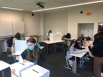 Vom 10. bis 12. Mai machten sich die Schüler*innen auf den Weg ins schulische Wahllokal, um ihre Stimme abzugeben. Die Wahlbeteiligung lag bei 86,4%.