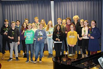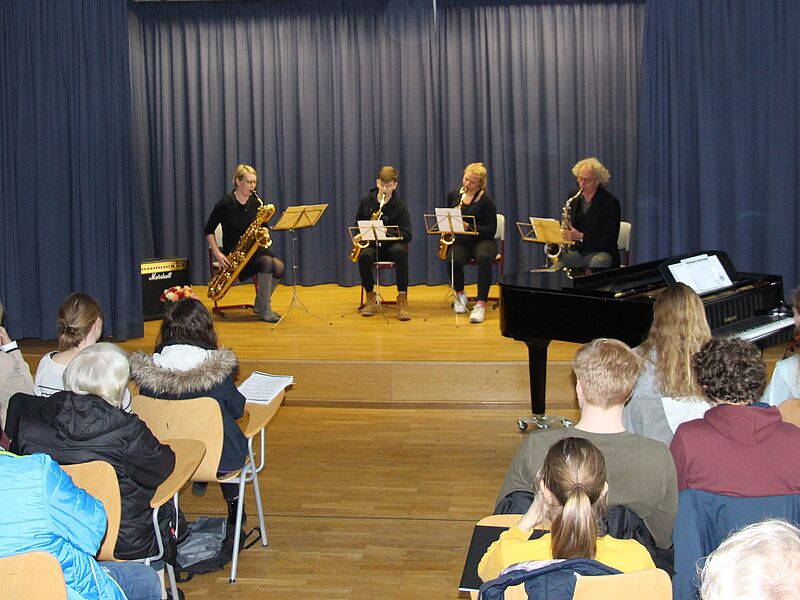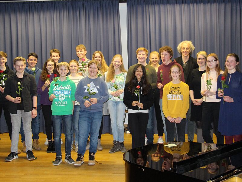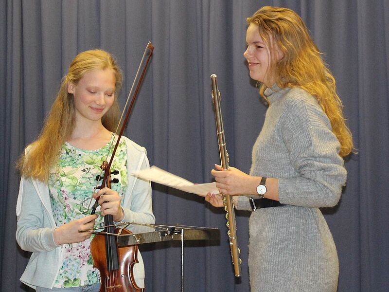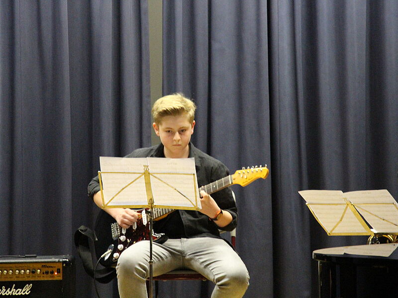 Schülerinnen und Schüler aller Altersklassen und auch einige Lehrer präsentierten ihre musikalischen Fähigkeiten. Es wurde gesungen, gefiedelt, gezupft und geflötet, und auch von Klassik bis Pop war alles dabei. Durch den Abend führten als Moderatoren Leon Kröger und Sarah Glashörster aus der EF. Herr Marcus und Herr Heinke, denen wir übrigens sehr dankbar für die Organisation sind, sowie auch alle anderen Beteiligten und Zuschauer sprachen von einem sehr gelungenen Abend. Das Kammerkonzert soll auf jeden Fall im nächsten Jahr wiederholt werden.