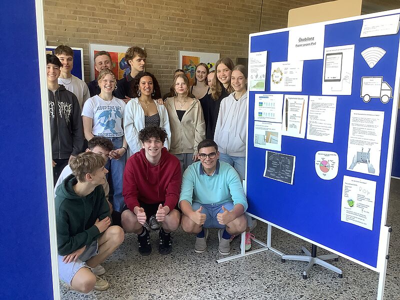 Bei Interesse melden Sie sich bitte bei Frau Riethmüller. Interessante Themen, die in unserer Ausstellung zu finden sind, sind beispielsweise die Veränderungen der Tier-und Pflanzenwelt, die Veränderungen der Klimazonen oder auch die Frage, wie sich der Klimawandel auf das Wetter auswirkt. Zudem haben wir auch eine Ökobilanz: iPad vs. Papier erstellt.