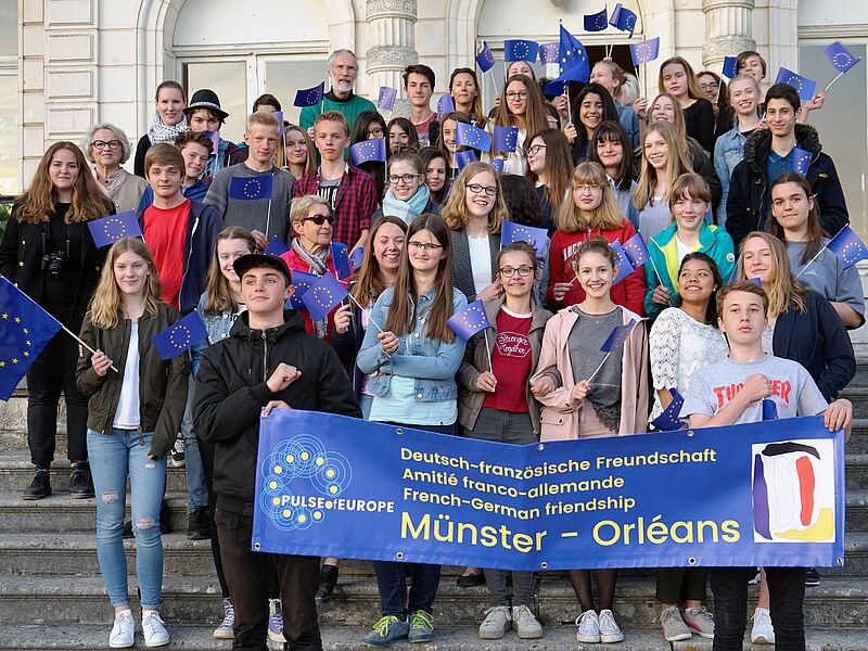 Der Austausch stand in diesem Jahr im Zeichen Europas. Wo auch immer die Schülerinnen und Schüler in Frankreich auftraten, zeigten sie ihre Sympathie für Europa. Mit einem großen Banner des „Pulse of Europe“ und Europafahnen machten sie deutlich, welch große Bedeutung offene Grenzen, persönliche Begegnungen und kulturelle und sprachliche Erfahrungen für die Zukunft Europas bedeuten.
