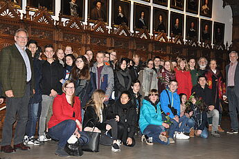 Am Montag lernten sich die jungen Franzosen und Deutschen beim Lindy-Hop-Tanzen kennen. Dienstag empfing Bürgermeister Gerhard Joksch die Gäste aus Münsters Partnerstadt offiziell im Friedenssaal des Rathauses und erzählte ihnen zahlreiche spannende Details zur Geschichte der Stadt Münster. Er wies darauf hin, wie wichtig gerade in unserer Zeit der persönliche Kontakt mit Menschen anderer Nationen und Kulturen im gemeinsamen Europa ist. Dazu dienten auf lokaler Ebene die zahlreichen direkten Begegnungen von Bürgern der unterschiedlichen Partnerstädte Münsters. Erst ein unmittelbares Kennenlernen ermögliche ein wirkliches Verstehen des Anderen und beuge dem Entstehen von Klischees und Vorurteilen vor.