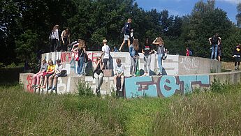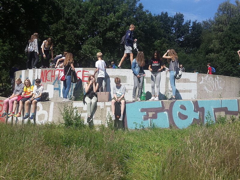 So wurden die Betonringe von Donald Judd beklettert und die Klanginstallation von Susan Philipp angehört, die extra für die Klasse abgespielt wurde. Zum Schluss konnte noch die Schrift von Ilja Kabakov im Himmel gelesen werden.