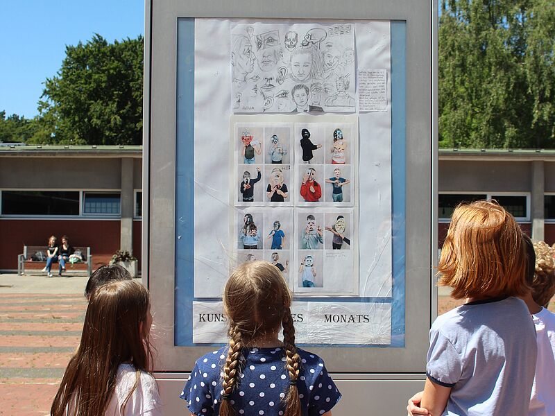 Bei dem Kunstwerk des Monats Juli handelt es sich um ein Klassenprojekt zum Thema „Masken“ aus der 7a.