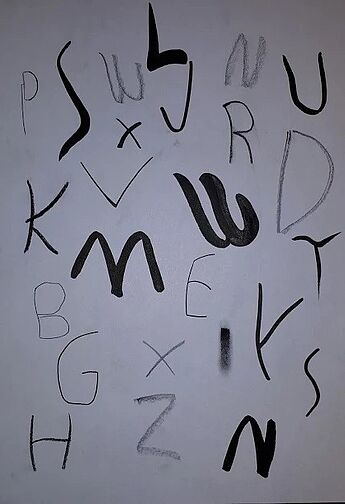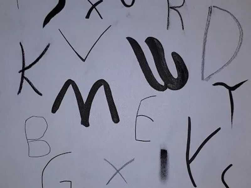 Aufgabe war es einen eigenen Schrifttypus zu entwickeln, welcher seinen Ursprung in Buchstabenformen hat, die durch Alltagsgegenstände o. Ä. sichtbar werden. Aus solchen abfotografierten Buchstabenformen sollten die SuS dann in einem zweiten Schritt ihren Schrifttypus entwickeln und in eine Covergestaltung einfließen lassen.
