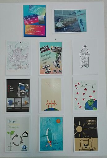 Die Plakate, die als Kunstwerk des Monats September zu sehen sind, wurden zudem noch als Postkarten vervielfältigt. Diese bestechen durch ihre Aussagekraft und Gestaltung.
