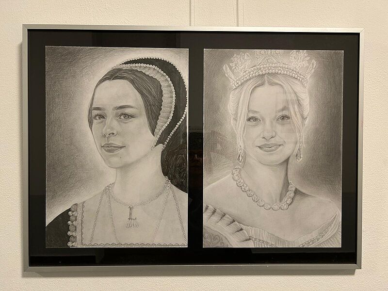 Clara Mersmann zeigt Menschen, die ihr nahe stehen in einem historischen Gewand. Mit beeindruckendem zeichnerischem Können und sehr genauem Blick für Details setzt sie so diesen Personen ein Denkmal.