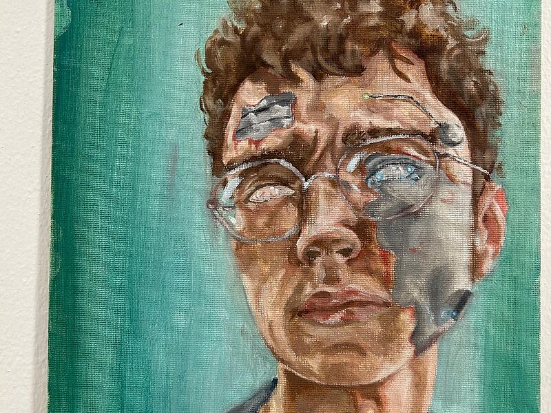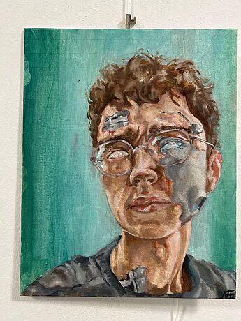 Noah Fischer beschäftigt sich ebenfalls mit Menschen aus seiner nächsten Umgebung und hält diese meisterhaft auf kleinerem Format in Ölmalerei fest.