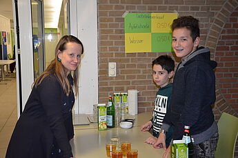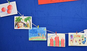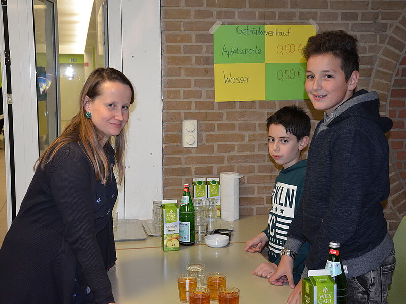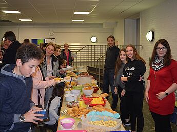 Zur Unterstützung des Hilfsprojektes in Paraguay wurden im Anschluss an die kreativen Darbietungen wieder Weihnachtskarten verkauft. Diese hatten die Schülerinnen und Schüler selber gestaltet. Der Erlös wird Ko‘embotá gespendet. Am Ende des Abends waren alle Weihnachtskarten ausverkauft. Ein lateinamerikanisches Buffet, welches die Eltern gestaltet hatten, rundetet den stimmungsvollen Abend ab.