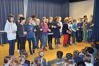 Die Schülerinnen und Schüler sangen Stücke wie Guantanamera und den Banana Boat Song, einige Mädchen tanzten auch zum Ju Ju on the beat Song. Die Zuschauer waren begeistert und die Sängerinnen und Sänger sichtlich stolz.