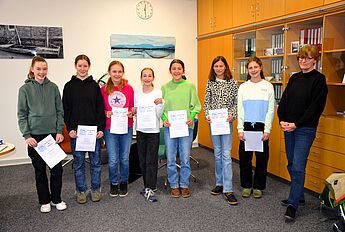 Die Schülerinnen, die in der 1. Runde des Wettbewerbs auf Schulebene gewonnen haben, wurden nun im Schulleiterbüro geehrt.