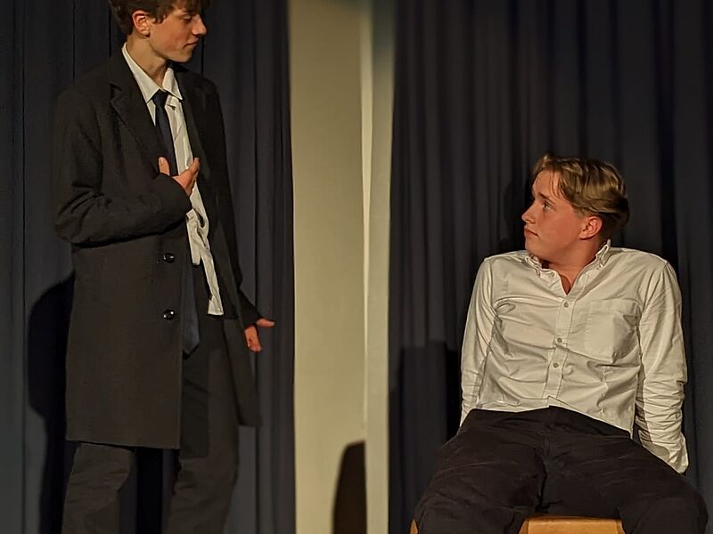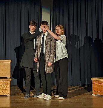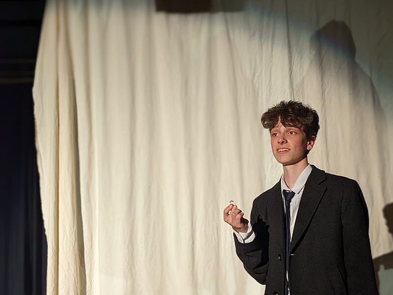 Wir wollen nicht zuviel vorwegnehmen, aber so viel sei verraten: es gibt phantasievoll ausgestaltete, alptraumhafte Szenen, einen teuflischen Fernglashändler (Laurin Rohde), einen skurrilen Automatenbauer (Beeke Drechsler) und eine von ihm geschaffene lebensechte Puppe Olimpia (Jana Buchholz) mit schönen Augen, die für Claras und Nathanaels Liebe gefährlich wird. Und das alles im Alten Musiksaal, heute um 19.30.