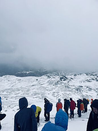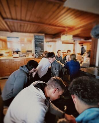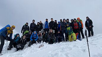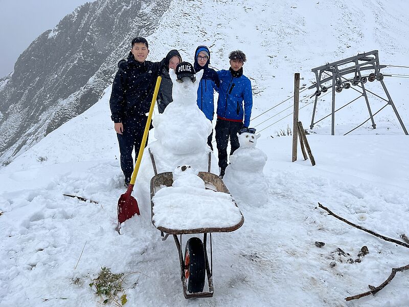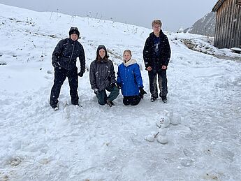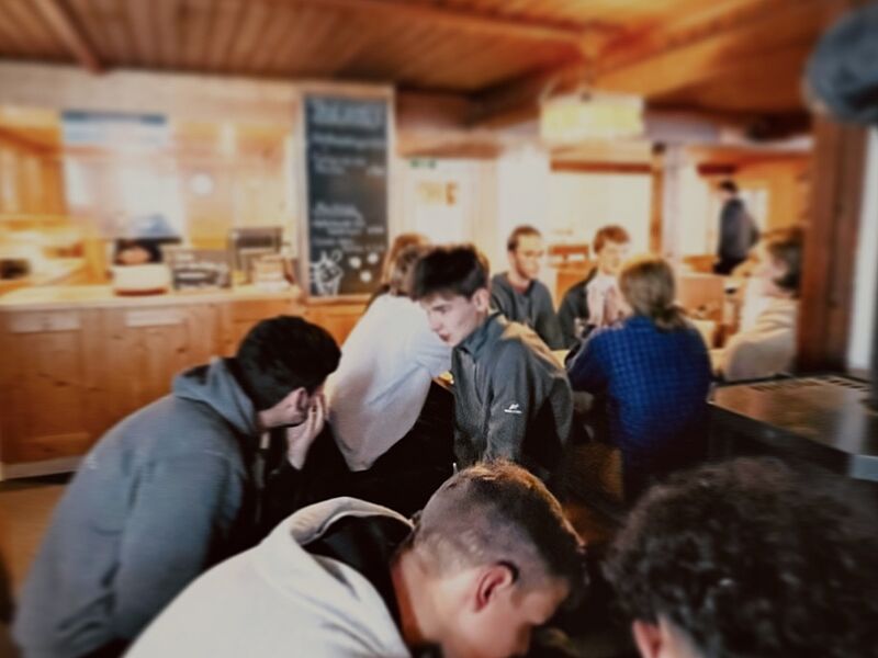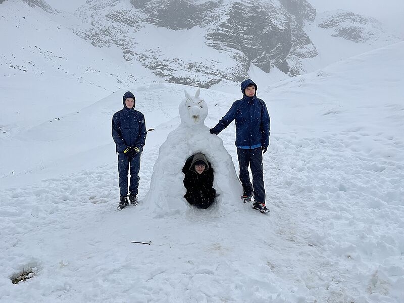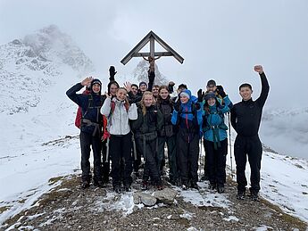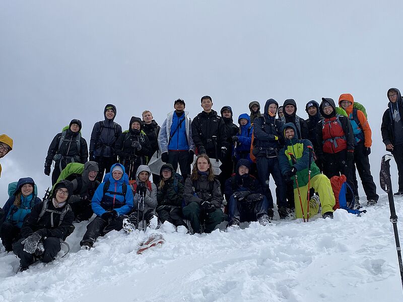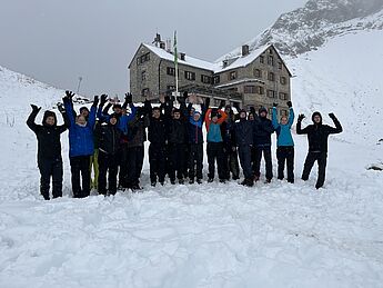 Am Nachmittag sollte dann noch ein alpiner Wettkampf bestehend aus drei Kategorien (Fragen beantworten, Schneemann-Wettbewerb und „Zipfelbob" fahren) folgen, der von der überragenden Gruppe drei dominiert wurde, die in allen Disziplinen den ersten Platz belegte. Nach einem angenehmen letzten Abend stand am nächsten Morgen der finale Weg zurück ins Tal an und wurde von grauem Himmel und Schneeregen begleitet. Dann war es Zeit von Thomas und Andrea Abschied zu nehmen, die uns die Woche über immer bestärkt und geleitet hatten und einen ganz großen Teil zu dieser legendären Kursfahrt beigetragen haben - in vielerlei Hinsicht waren sie unsere Lebensversicherung.