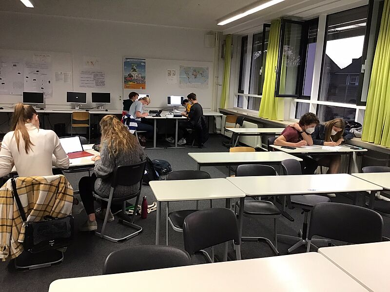 Auch die Pandemie kann uns nicht davon abhalten, an Wettbewerben teilzunehmen. Zweimal verschoben und jetzt doch online findet heute der Internationale Bolyai-Wettbewerb statt. Diese Schüler*innen knobeln bereits zum vierten und, weil sie die Schule im Sommer mit dem Abitur verlassen, dieses Jahr zum letzten Mal mit. Viele andere aus allen anderen Jahrgängen knobeln heute auf Distanz in Videokonferenzen von zu Hause aus.