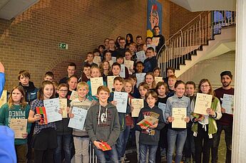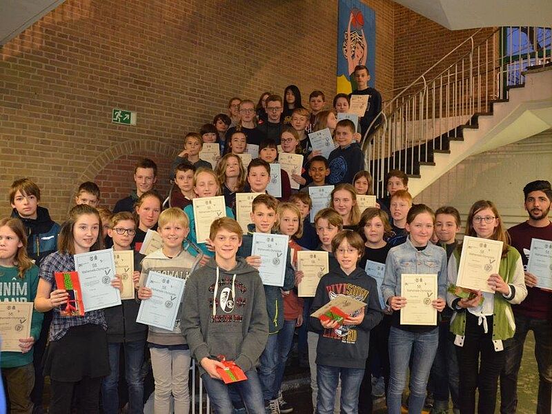 Insgesamt 420 Schüler, die sich zuvor bei schulinternen Wettbewerben qualifiziert hatten, waren bei der Regionalrunde im Hittorf-Gymnasium angetreten. Die 60 besten wurden jetzt in einer Feierstunde ausgezeichnet.