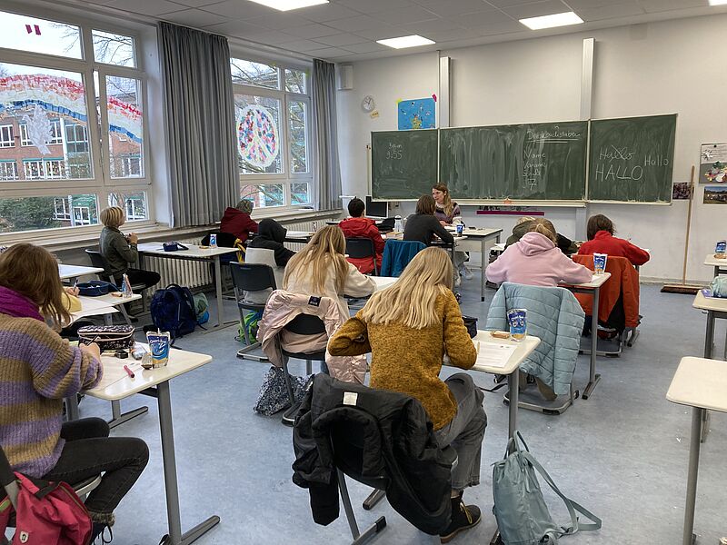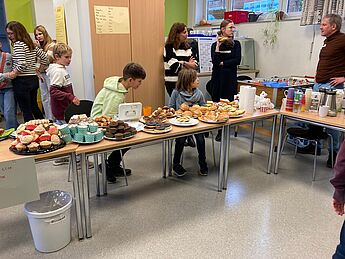 In der Zeit von 9.00 bis 12.30 Uhr kamen ca. 240 Schüler*innen und Schüler der Münsteraner Gymnasien, zum Teil mit ihren Eltern, zum WHG, um an der Stadtrunde der Matheolympiade teilzunehmen. Während die Schüler*innen über den kniffligen Aufgaben schwitzten, tranken ihre Eltern Kaffee und aßen Leckereien aus dem üppigen Angebot des Elterncafés der 5a. Gegen 12.30 Uhr war die letzte der 240 Klausuren abgegeben, die Schule leerte sich und auch unsere Mathelehrer*innen durften endlich nach Hause gehen. Dennoch füllte sich das Lehrerzimmer wieder: Gegen 12.30 Uhr war die letzte der 240 Klausuren abgegeben, die Schule leerte sich, auch unsere Mathelehrer*innen durften endlich nach Hause gehen, aber das Lehrerzimmer füllte sich wieder: mit Kolleg*innen der beteiligten Schulen. Je zwei Kolleg*innen aller teilnehmenden Schulen beteiligten sich an der Korrektur der 240 Klausuren.