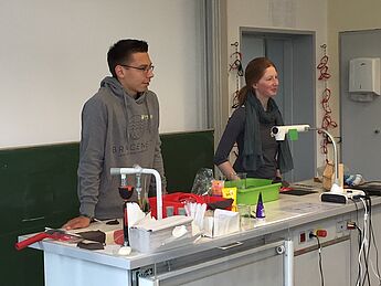 Unter Anleitung von Luca Thomas (Q2) und Wiebke Brockmeier (Q2) lernten die Dritt- und Viertklässler, wie man Mikroplastik aus Shampoo herausfiltern kann, wie es unter dem Mikroskop aussieht und dass in manchem Pelling auch Kiwi-Kerne als Ersatz- „Schrubber“ arbeiten.