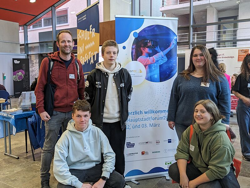 Wir (Torge, Emma, Friederike, Joost und Herr Diekmann) aus den MINT-Leistungskursen der Jahrgangsstufe Q1 sind im Rahmen des MINT-EC Hauptstadtforums nach Berlin gefahren, um uns über Studiengänge-, Berufe und Ausbildungen insbesondere in den MINT-Fächern zu informieren. Unter anderem wurden in zukunftsweisenden Vorträgen und ganztägigen Workshops viele interessante Einblicke gewährt. Am ersten Tag haben wir in Vorträgen zu den Themen „Wie funktioniert Künstliche Intelligenz“, „The Data Behind Healthy Ageing“ oder „Viren-Schatzsuche im Berliner-Abwasser“ einiges gelernt und erfahren. Zahlreiche Infostände verschiedener renommierter Unternehmen und Universitäten (z.B. BMW, Siemens, RWTH Aachen etc.) zeigten uns die Vielzahl der Möglichkeiten in den MINT-Bereichen. Am zweiten Tag haben wir eigenständig verschiedene Workshops in Berlin-Mitte und Umgebung besucht. Hier gab es beispielsweise Einblicke in den Tagesablauf eines biomedizinischen Forschungslabor. Es konnten Roboter für das autonome Fahren programmiert oder auch Pharmazeutika wie Aspirin hergestellt werden. Das gesamte Programm war sehr informativ und interessant.