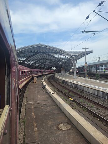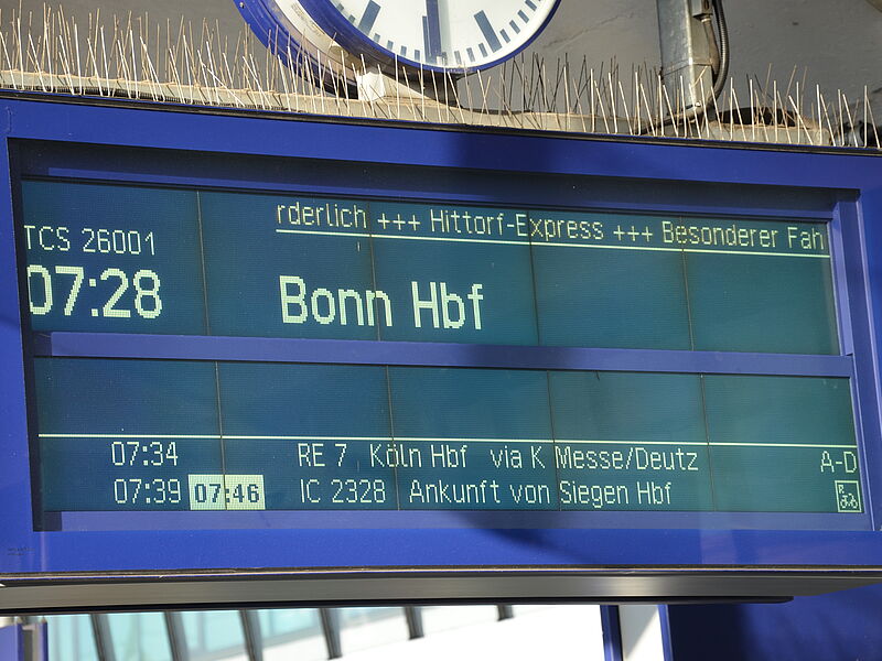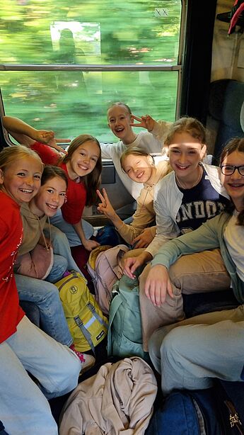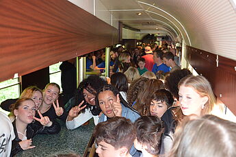 Schon nach wenigen Minuten erklingt die Stimme des Zugführers; er begrüßt alle Mitfahrenden in seinem Zug und informiert sie über Ankunftszeit am Zielort. Eine aufgeregte Stimmung verbreitet sich schlagartig in den Abteilen. Die Realität der Reise wird erstmalig klar. Musik dringt durch die Lautsprecher und erfüllt den Zug zusammen mit Freudenschreien der Kinder. Nach drei endlos langen Stunden kamen die ersten Häuser von Bonn in Sicht. Eine Stadt voller Kunst und Geschichte erwartete die Schülerinnen und Schüler hinter den geschlossenen Türen des Zuges.