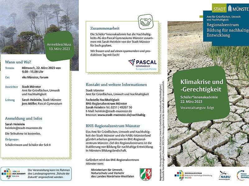 Die Nachhaltigkeits-AG des Pascal-Gymnasiums hat das Projekt in Kooperation mit einer Vertreterin der Stadt Münster initiiert. Ziel war es, Schülerinnen und Schülern der Oberstufe eine Möglichkeit zur Vernetzung und Erweiterung der Sachkenntnis über Klimafragen zu bieten. Hierzu wurden unter anderem je zwei aus vier Workshops gewählt, um bestimmte Themenbereiche zu besprechen und zu diskutieren.
