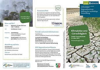 „Schülerakademie Klimakrise und -Gerechtigkeit" lautete der Titel der Veranstaltung, an der wir, drei Schülerinnen der EF-Q1, am 22. März teilnehmen durften. Im Erdkundeunterricht wurden wir auf diese Aktion aufmerksam gemacht. Wir trafen uns dann um neun Uhr morgens im Forum der VHS Münster zu dem sechsstündigen Programm.